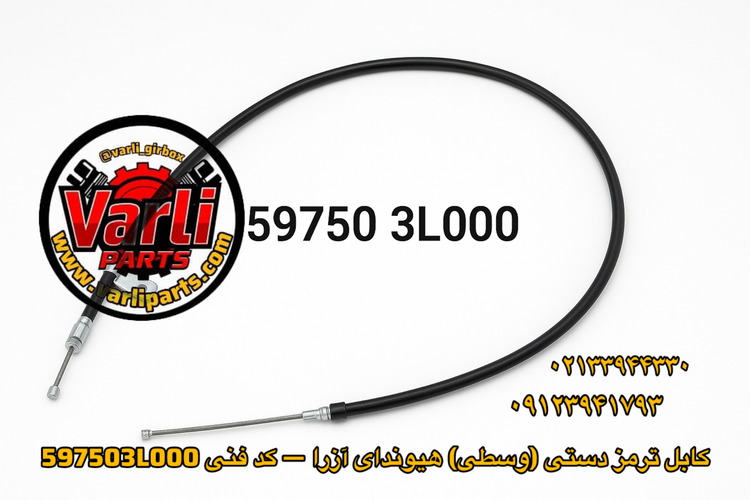 • کد فنی: 597503L000 • نوع: کابل ترمز دستی — سیم وسطی • کیفیت ساخت: هسته فولادی + روکش محافظ • اتصالات: اتصالات فلزی استاندارد با آبکاری محافظ • نصب: جایگزین فابریک، نصب آسان توسط مکانیک: نامحدود